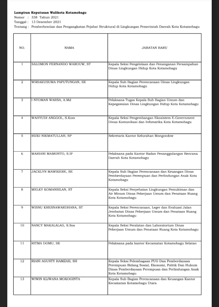 Sekda Ir Sande Dodo menjelaskan, tepat hari ini kembali dilaksanakan pelantikan untuk beberapa pejabat di lingkup Pemkot Kotamobagu.
